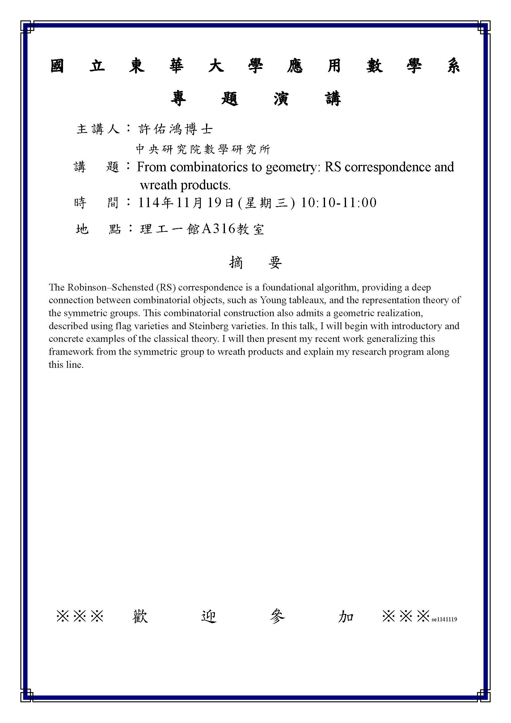 <![CDATA[【應數系演講】114-10-08 王仁宏博士演講]]>