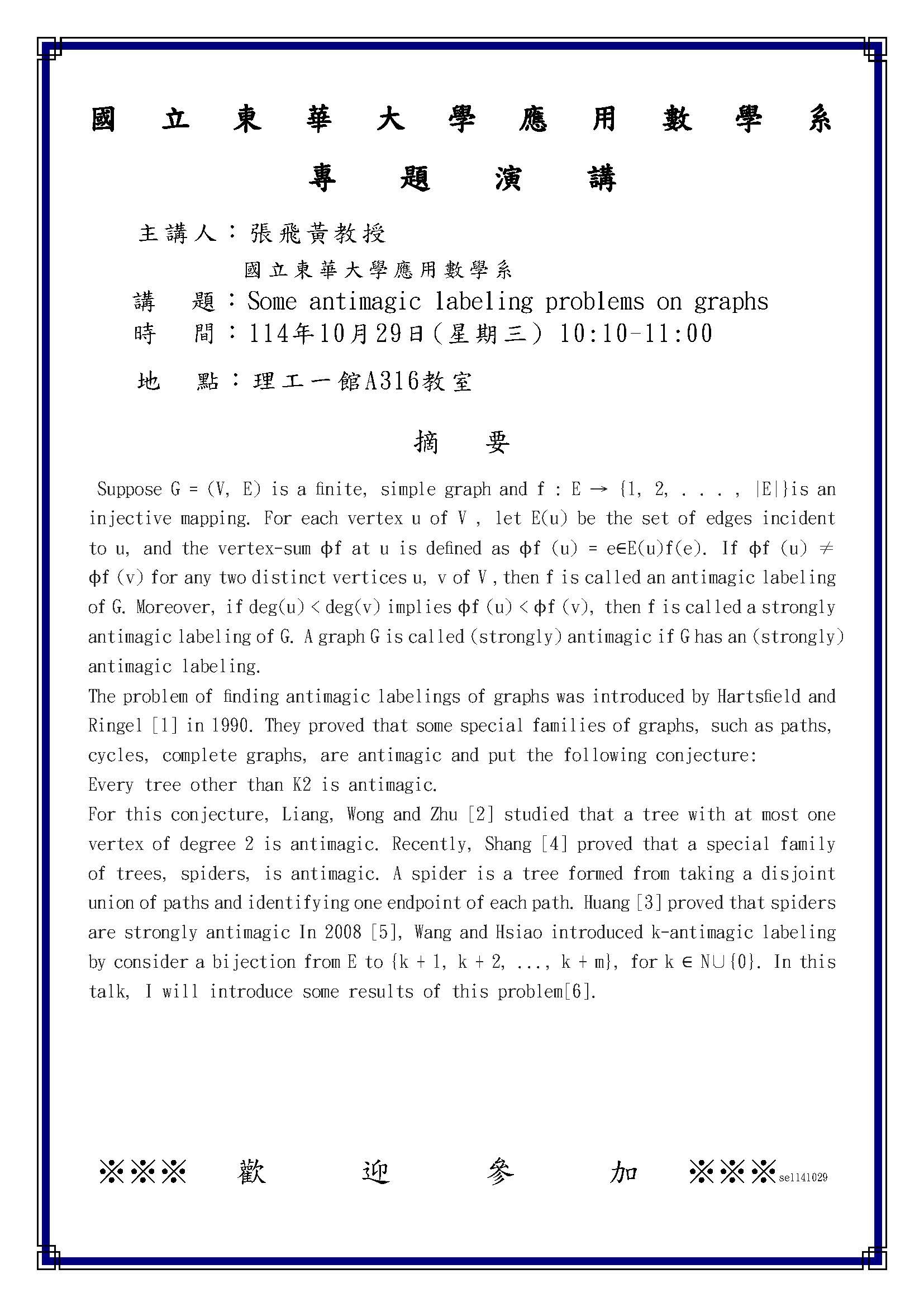 <![CDATA[【應數系校友卓越講座】114-09-26(五)下午3點至5點 理一A318教室]]>